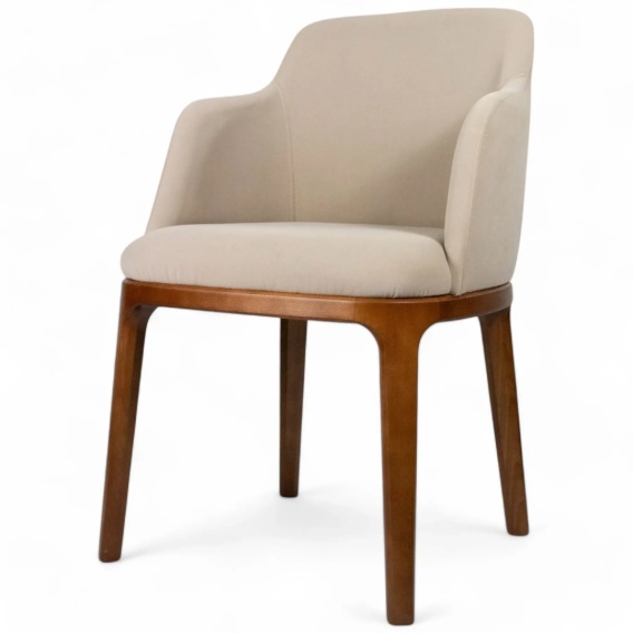 Krzesło tapicerowane Aurora to wyjątkowe połączenie nowoczesnego designu oraz funkcjonalności, które spełnia oczekiwania nawet najbardziej wymagających użytkowników. Wyposażone w wygodne podłokietniki, oferuje komfort użytkowania zarówno w jadalni, salonie, jak i w biurze. Co więcej, jego solidna konstrukcja oparta na nogach z drewna bukowego gwarantuje stabilność, a tapicerka z tkaniny Tasos (na zdjęciu w kolorze 02) nadaje wnętrzu elegancji. Dodatkowo, dzięki szerokiej gamie kolorów drewna, możesz dopasować krzesło idealnie do swojego wnętrza – sprawdź dostępne kolory nóg.