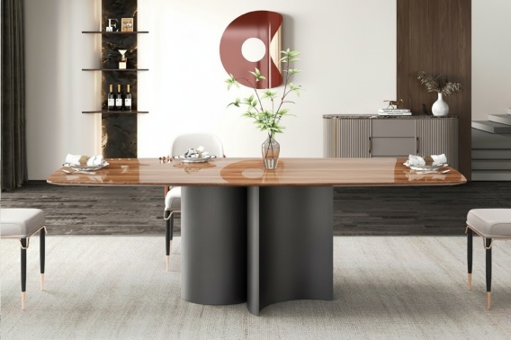 Podstawa stołu przyciąga wzrok – w kolorze BLACK BRUSHED , która nadaje elegancji wnętrzu dzięki niespotykanemu kształtowi.